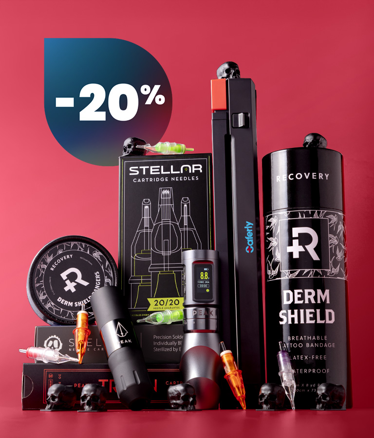 Tatoveringstilbehør-butikken vår er den viktigste europeiske distributøren for en rekke eksklusive tatoveringsmerker, inkludert World Famous Ink, Kuro Sumi, Recovery Aftercare, FK Irons, A Pound of Flesh, Stellar 2.0, og Hustle Butter Deluxe.
