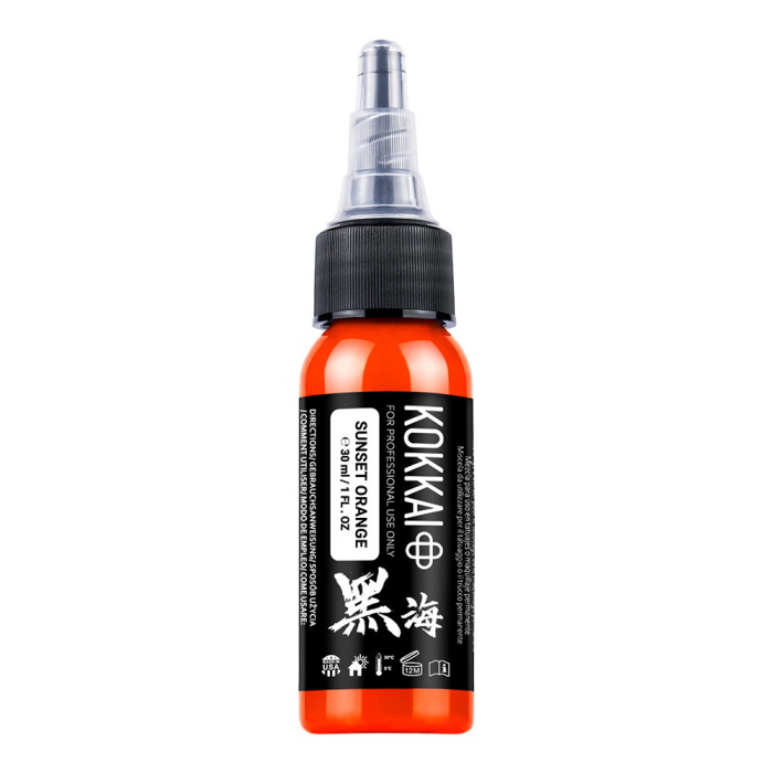 Add bold energy to your work with Kokkai Sumi Ink in Sunset Orange, a bright, warm orange ideal for highlights, accents, and colour packing. Perfect for vibrant nature, landscape, and new school tattoos.