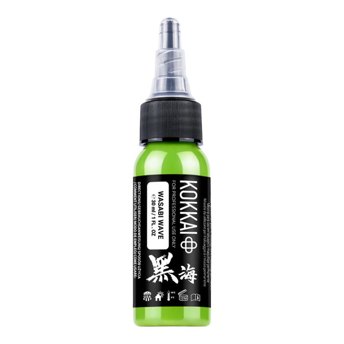 Add vibrant green energy to your work with Kokkai Sumi Ink in Wasabi Wave, a rich, bold green ideal for new school, colour surrealism, and nature or landscape tattoos. Perfect for shading, filling, and dynamic accents.