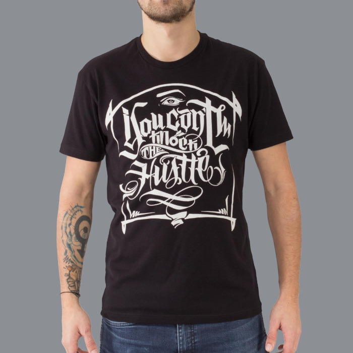 Luxury Hustle Wear T-skjorte i svart. 'Cant Knock The Hustle'-design av El Whyner.