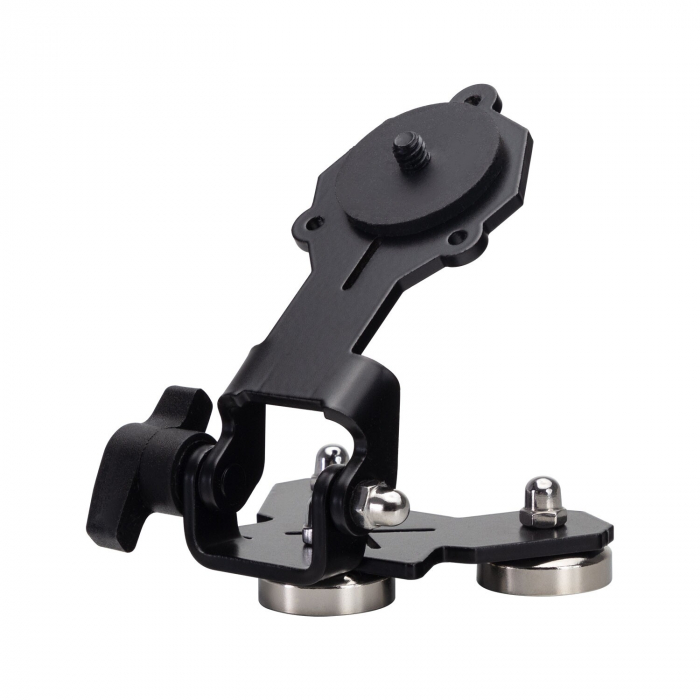 Magnetisk stativ for Musotoku strømforsyning. Magnetene på sokkelen av stativet lar deg feste strømforsyningen din til en magnetisk overflate. GoPro anordningen på stativet kan roteres, slik at du kan vende Musotoku i retningen du ønsker.