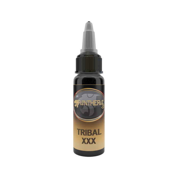 Panthera XXX Tribal er Pantheras mørkeste sort. Formelen garanterer en dyp og fløyelsaktig sort som vil holde seg supersort etter heling. Ideell for fylling men kan også brukes for sterke linjer.