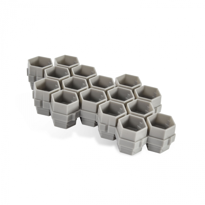Det intuitive designet til Hive Caps gjør det raskere og enklere for tatovøren å sette opp, slik at man rett og slett bare kan ta en kopp, sette den fra seg og begynne å jobbe! Hive Caps er designet slik at de enkelt kan settes sammen for å utvide tatovørens fargepalett og la tatovøren lage sitt eget tilpassede oppsett, samtidig som de gjør mest mulig ut av plassen på arbeidsstasjonen deres.