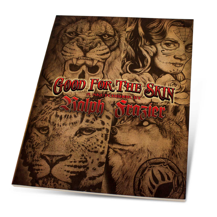 Good for the Skin av Ralph Frazier har 40 enkle sider med black and grey kunst. Denne boken er ment for inspirasjon for tatovører. Sidene er printet på et krem hvitt ark. Ralph er lærling hos Stinky Monkey Tattoos.