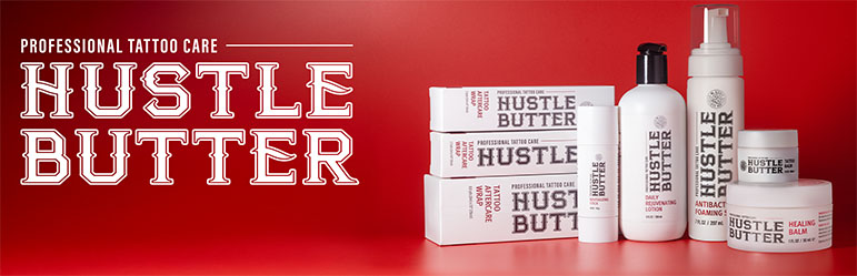 Hustle Butter Deluxe tilbyr noen av de beste tatoveringskremene på markedet, egnet for bruk før, under og etter tatoveringsprosessen. Denne 100 % naturlige, organiske og veganvennlige erstatningen for petroleumsprodukter kan brukes til å forberede huden før tatovering, som smøring under, og etterpå som etterpleiende tatoveringskrem. .